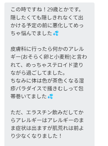 翌日、沖縄に仕事で医師に診てもらったら「行くのやめなさい」と言われたんですがELASTINを6粒1週間飲んだところ、、
