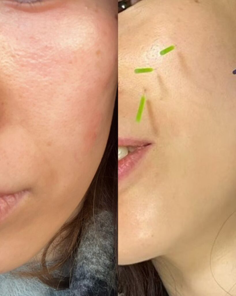 ここ10年近く、花粉の時期になると肌の赤みがまし、化粧水をつけるとヒリヒリ・・肌が敏感で赤みを気にされていたYさん。