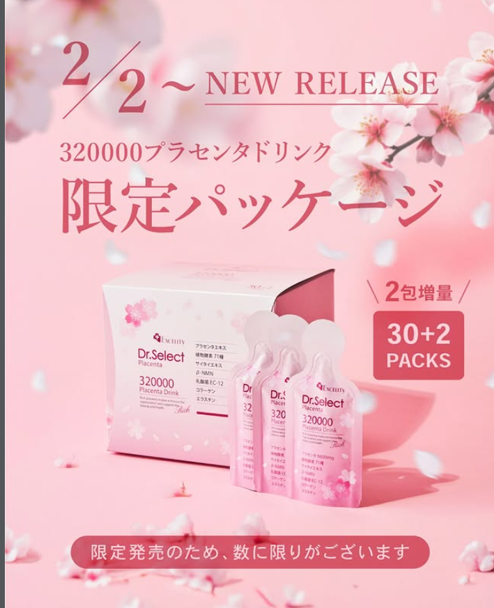 【期間限定】Excelity Dr.Select Placenta  320000 プラセンタ ドリンク スマートパック 30包入+2包