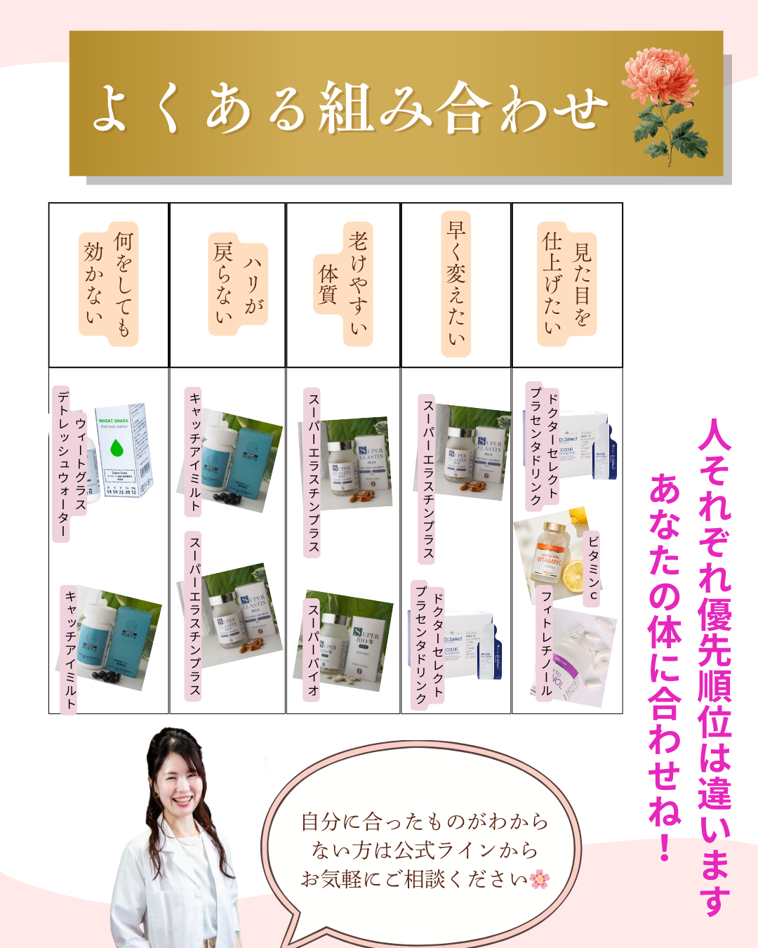 どれを選べばいいかわからない方へ|セルフチェック 2026 1/25 2026年1月25日 ¥0 どれを選べばいいかわからない方へ|セルフチェック個 お買い物カゴに追加 カテゴリー: サプリメント・健康食品, サンプル 説明 説明 結局、なにを選べばいいかわからない。 その迷いを、解決しあなたに合った商品を選ぶためのページです🌸 まずは、 今のあなたの“段階”を知るためのセルフチェックを行ってみて下さい。 🌸直接ラインやZOOMえ相談を希望の方はこちら 関連商品 Excelity Dr.Select Placenta 320000 プラセンタ ドリンク スマートパック 30包入 ¥12,960 お買い物カゴに追加 SUPERELASTINPLUS 3個セット(からだを知る冊子付) ¥38,880 お買い物カゴに追加 ドクターセレクト フィトレチノール(R)1000 2WAYサプリメント ¥10,800 お買い物カゴに追加 からだの状態を確認するためのサプリ サンプルセット ¥0 お買い物カゴに追加 この記事が気に入ったら フォローしてね! Follow Me コメント コメントする コメントをキャンセルコメント ※ 名前 ※ メール ※ サイト 次回のコメントで使用するためブラウザーに自分の名前、メールアドレス、サイトを保存する。 上に表示された文字を入力してください。 Δ