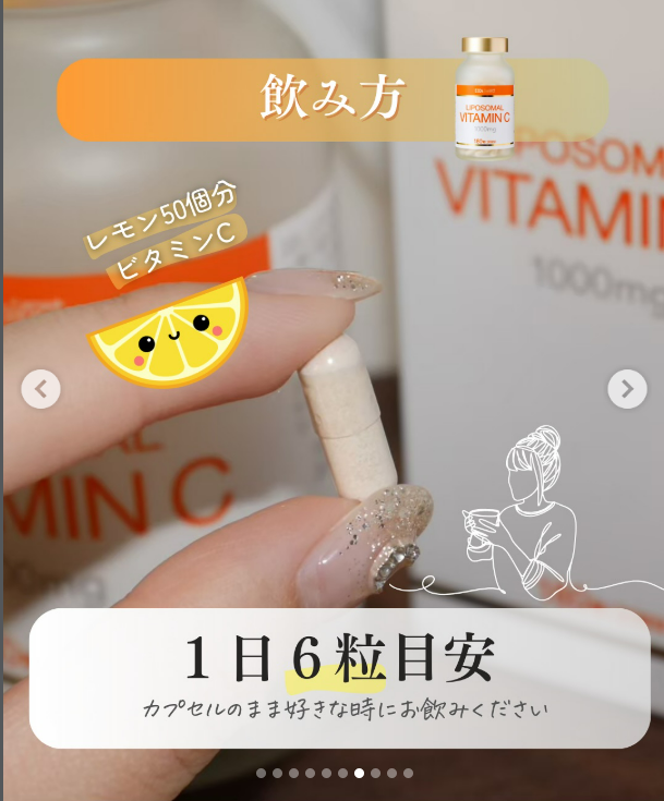 1日6粒でレモン約50個分(1000mg)のビタミンCを配合し、