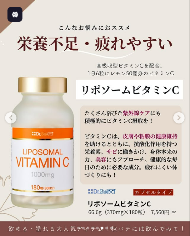 リポソーム技術により、通常のビタミンCより