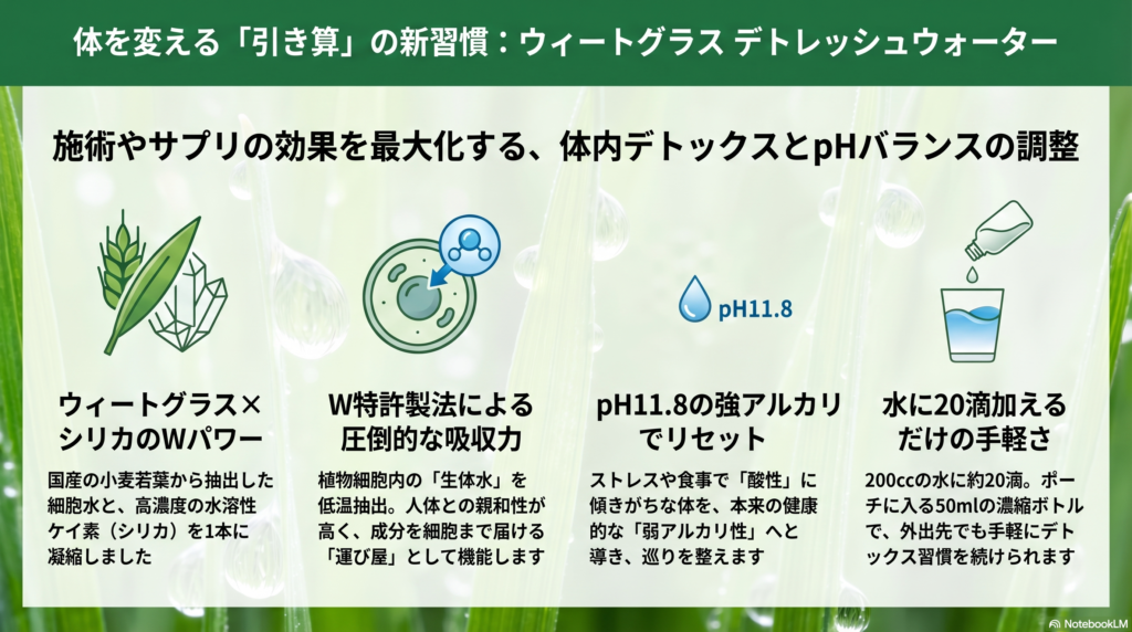 デトレッシュウォーターとは?私がウィートグラス・デトレッシュウォーターを自分でも使い、お客様にもご提案している理由